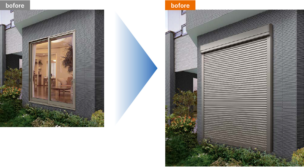 既存の窓に外壁の上から簡単に取り付けできるリフォームシャッター。